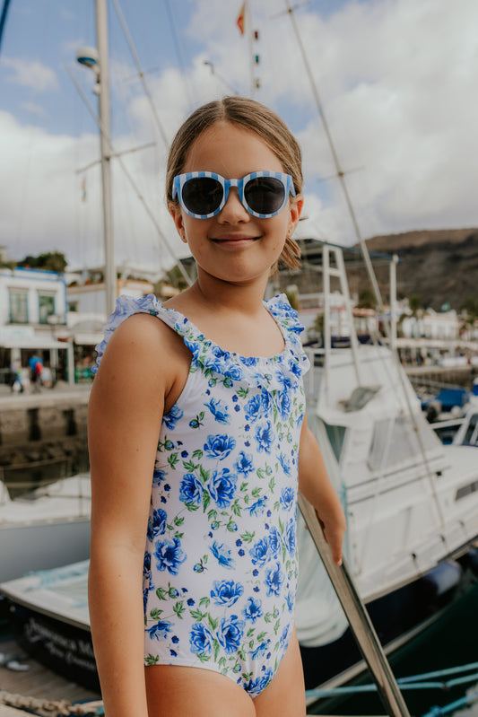La familia Sofía trabaja un tejido en málaga con tejido hipoalergénico. Un tejido con diseño exclusivo con el signo de distinción blanco y azul que es signo distintivo de Mommy Loves desde nuestros comienzos y con protección UV.